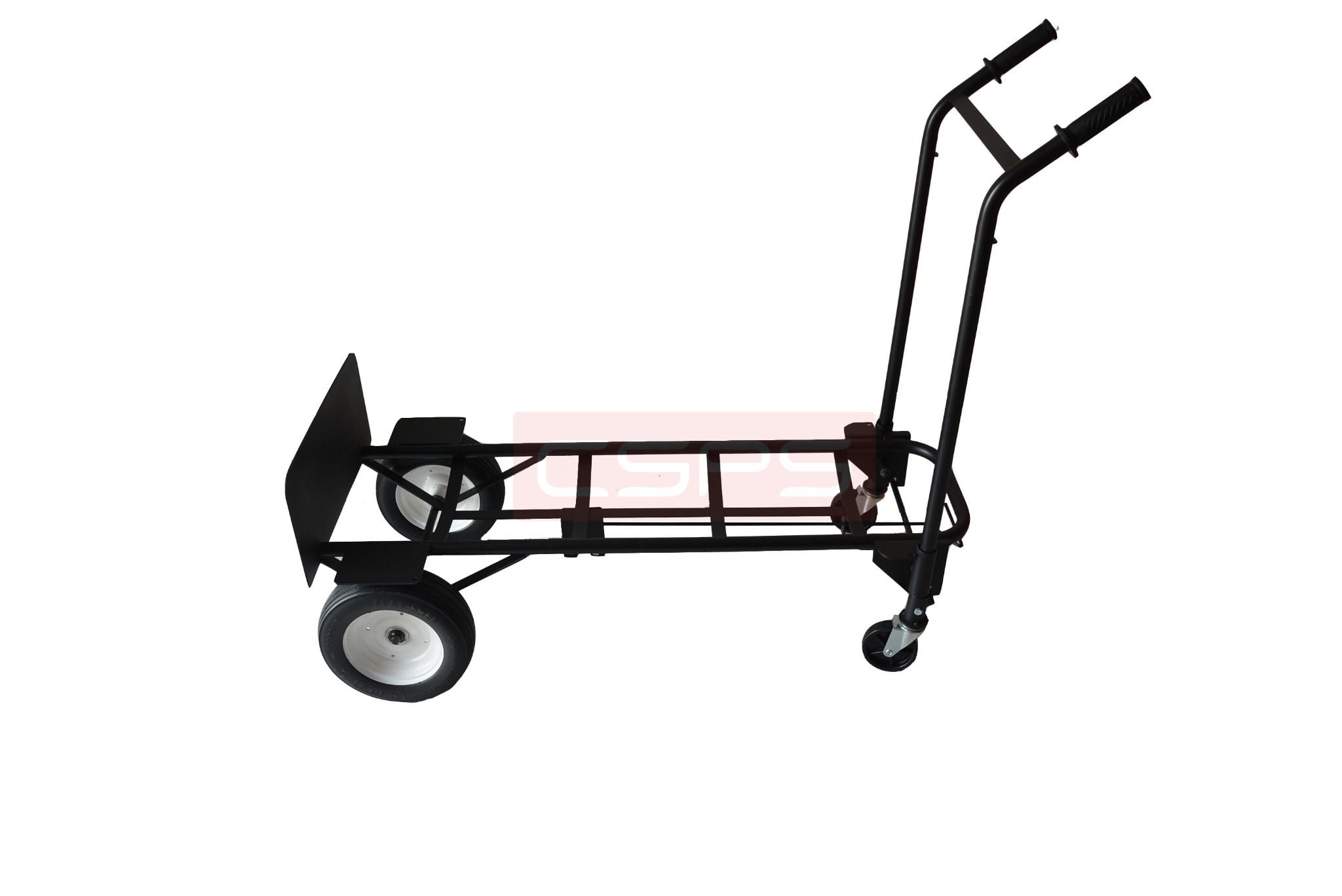 Sản phẩm được trang bị 2 bánh lớn đường kính 25cm và 2 bánh nhỏ đường kính 9.5cm, cho phép sử dụng theo 2 kiểu vận hành khác nhau tùy vào khối lượng hàng hóa và mục đích sử dụng.